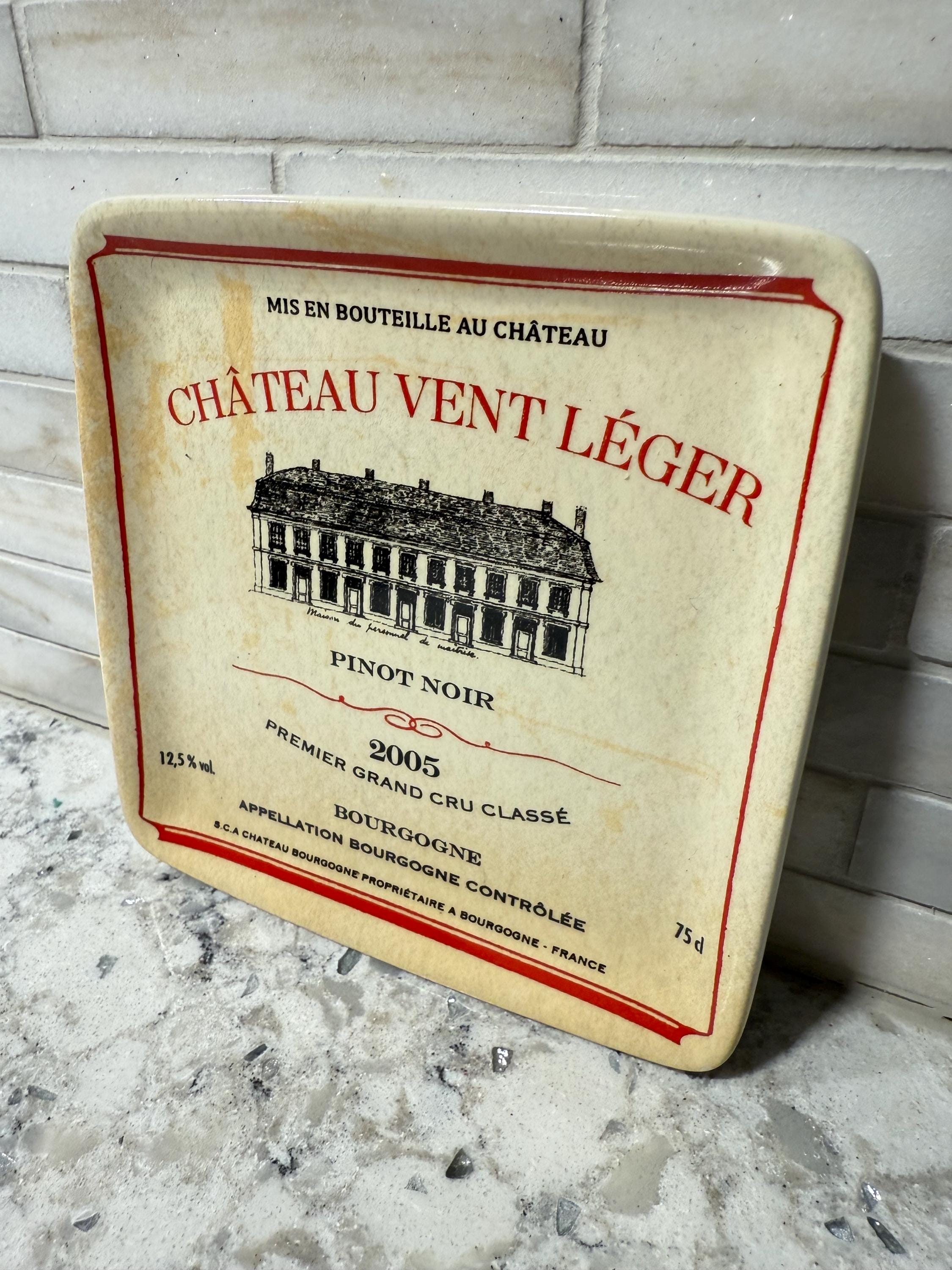 Add a touch of French elegance to your home with this charming vintage trinket dish featuring a wine label design from Château Vent Léger’s 2005 Pinot Noir. Perfect for wine enthusiasts, Francophiles, or anyone who appreciates unique and functional décor, this dish is ideal for holding jewelry, keys, coins, or small keepsakes.