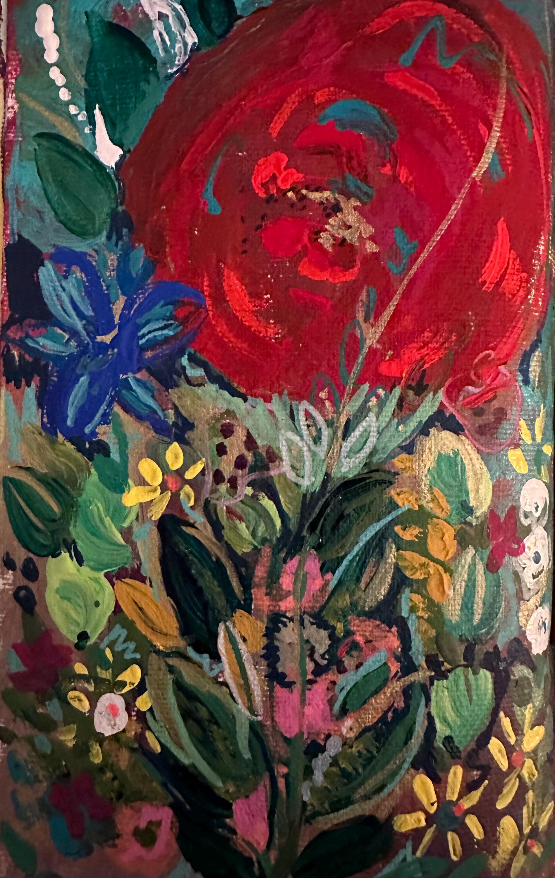 Ladies Fashion Silk Scarf Red and Blue- Original Art, Lightweight, Unusual Gift for Her