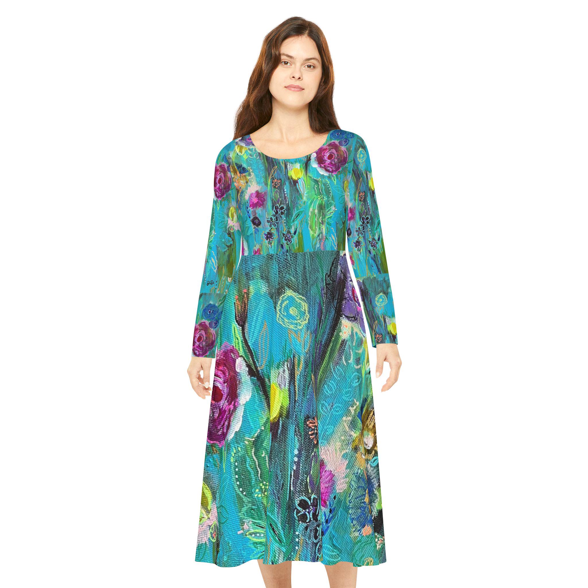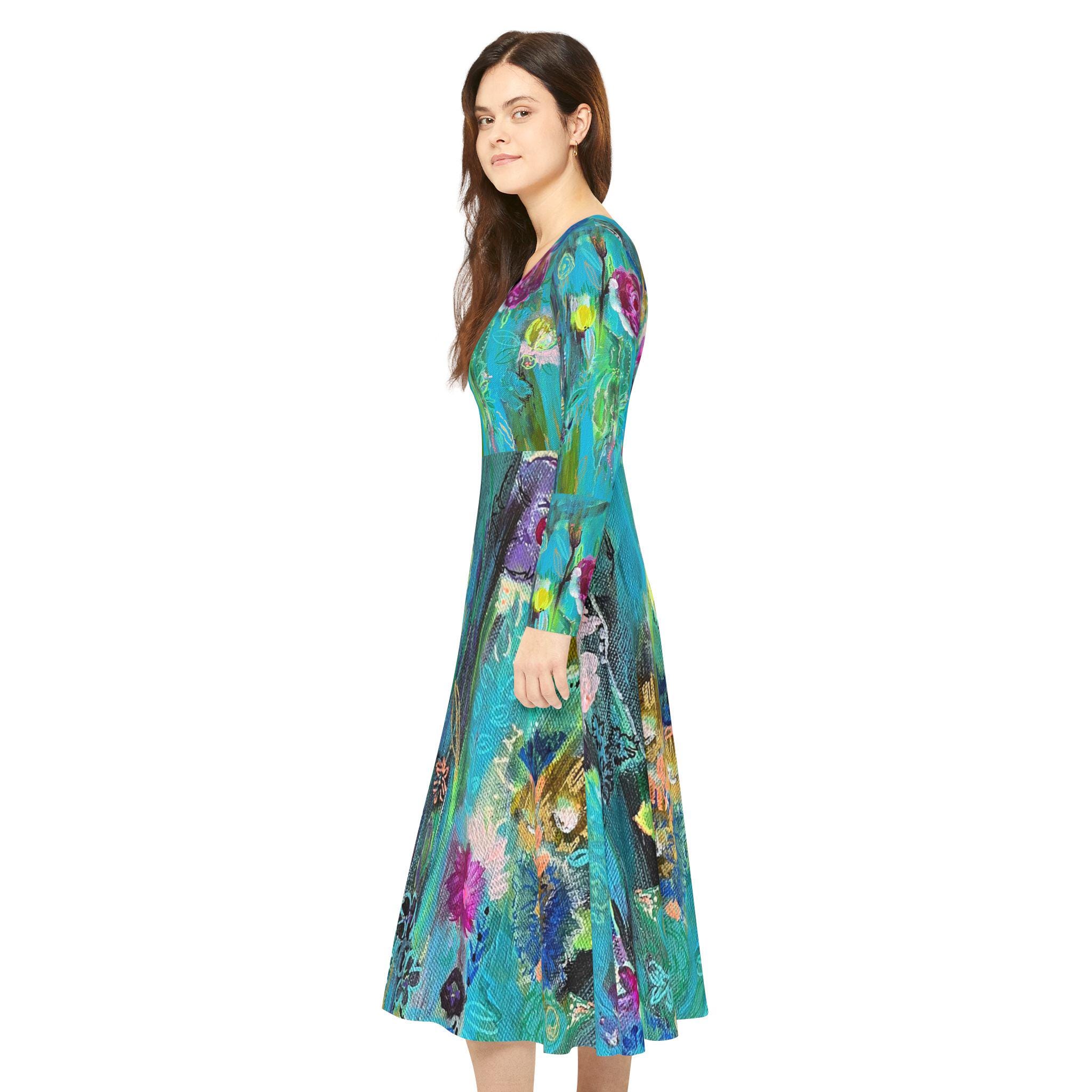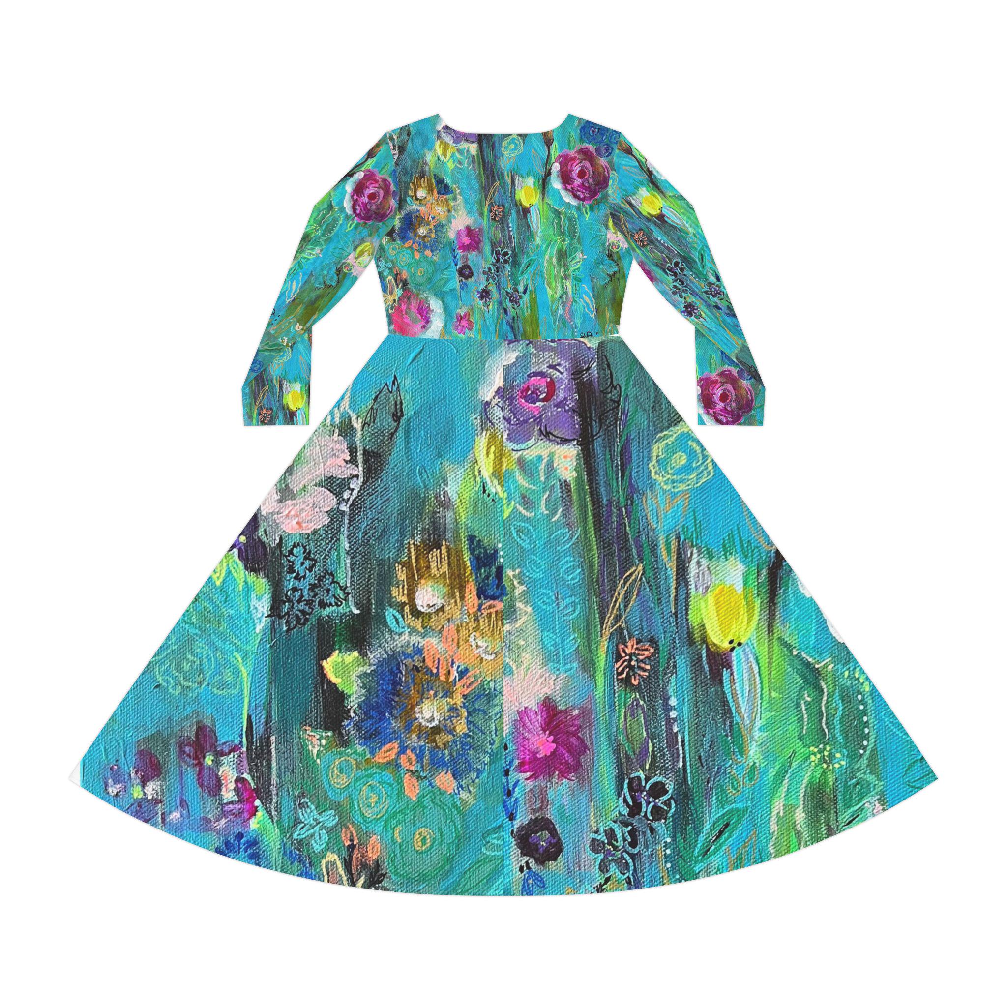 Introducing a stunning Women's Long Sleeve Dance Dress, perfect for those who love to express themselves through movement and style. This dress features a vibrant, artistic design that brings a sense of joy and creativity to any wardrobe. Its high-cut neckline and flowing silhouette make it ideal for dancing, while the lightweight polyester fabric ensures comfort and freedom of movement. Wear it to dance classes, performances, or casual outings, and feel fabulous wherever you go. Perfect for spring gatherings, summer parties, and special occasions like birthdays and celebrations, this dress is a beautiful choice for dancers, artists, and anyone who appreciates unique fashion.
