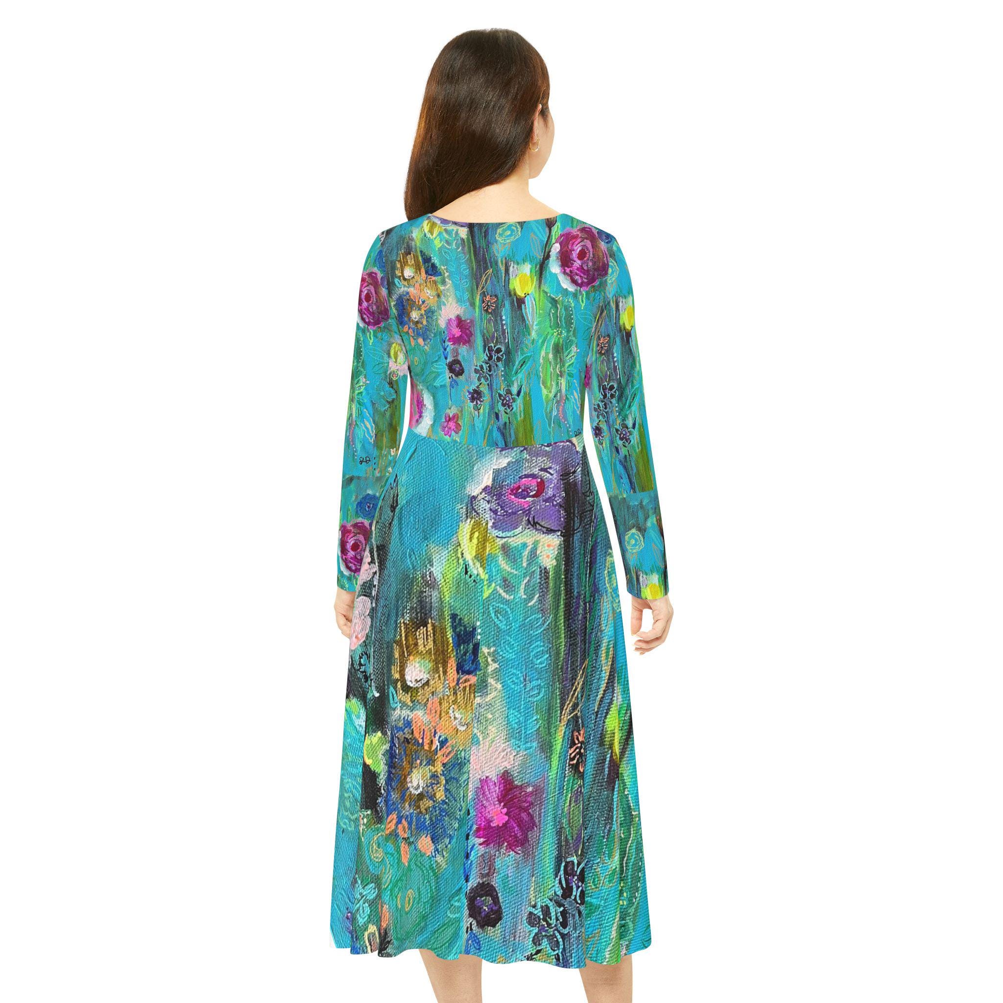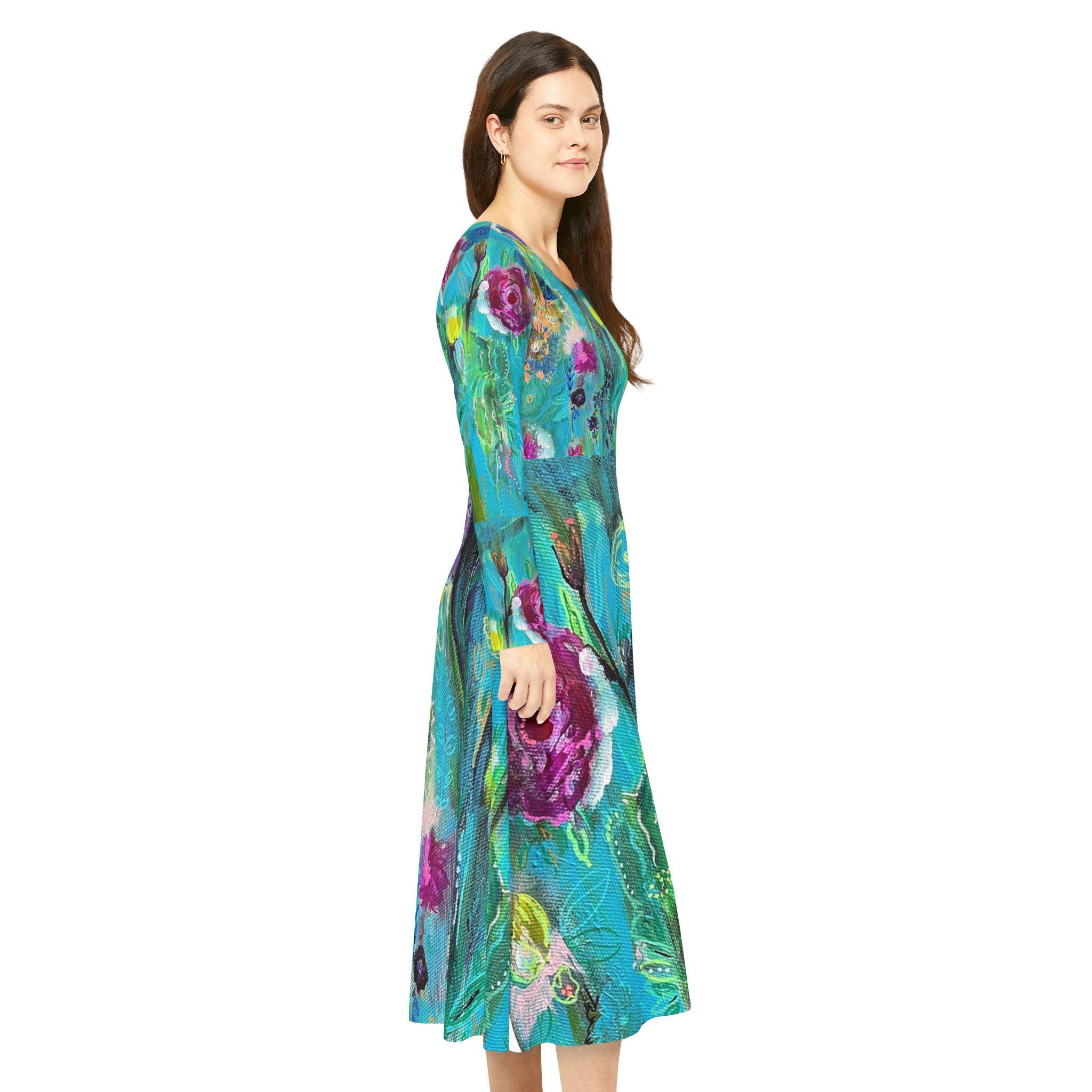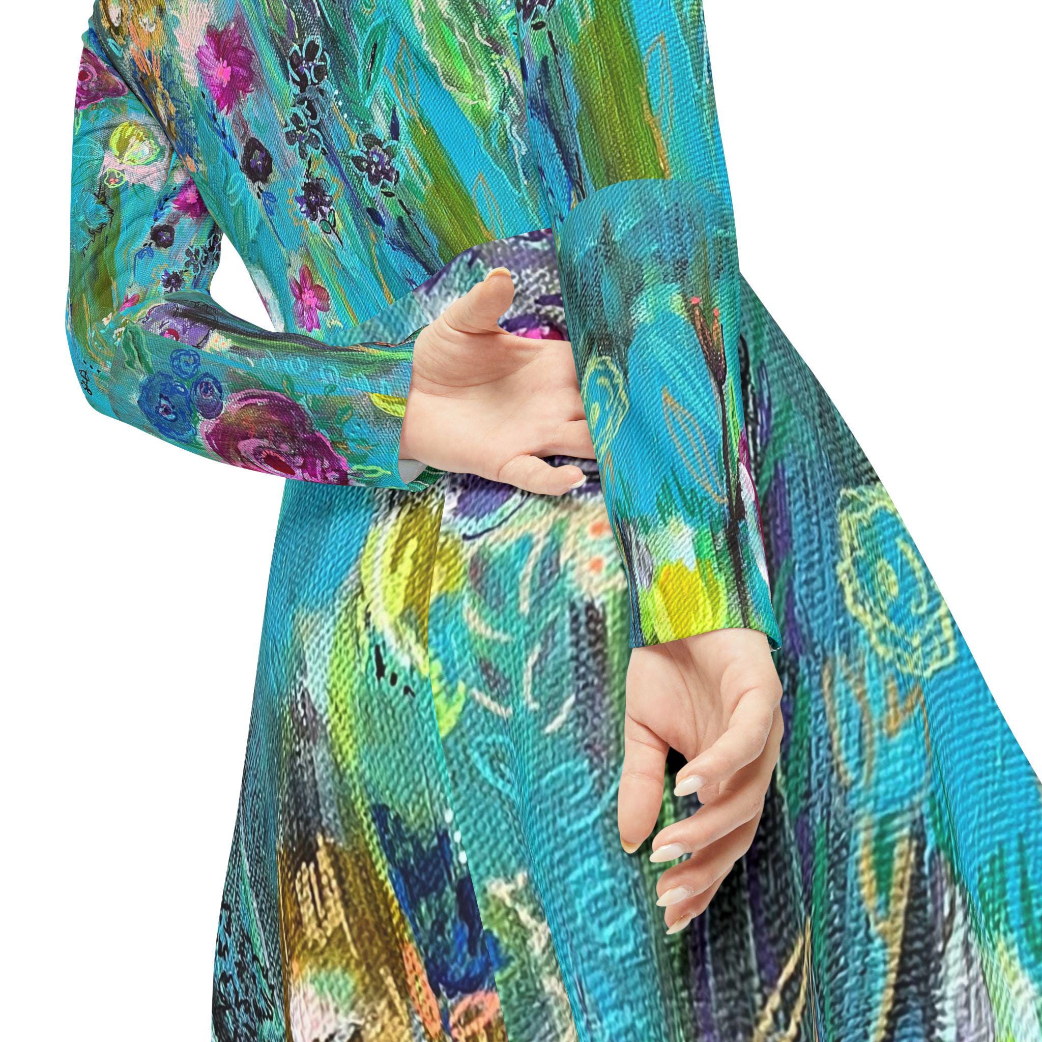 Introducing a stunning Women's Long Sleeve Dance Dress, perfect for those who love to express themselves through movement and style. This dress features a vibrant, artistic design that brings a sense of joy and creativity to any wardrobe. Its high-cut neckline and flowing silhouette make it ideal for dancing, while the lightweight polyester fabric ensures comfort and freedom of movement. Wear it to dance classes, performances, or casual outings, and feel fabulous wherever you go. Perfect for spring gatherings, summer parties, and special occasions like birthdays and celebrations, this dress is a beautiful choice for dancers, artists, and anyone who appreciates unique fashion.