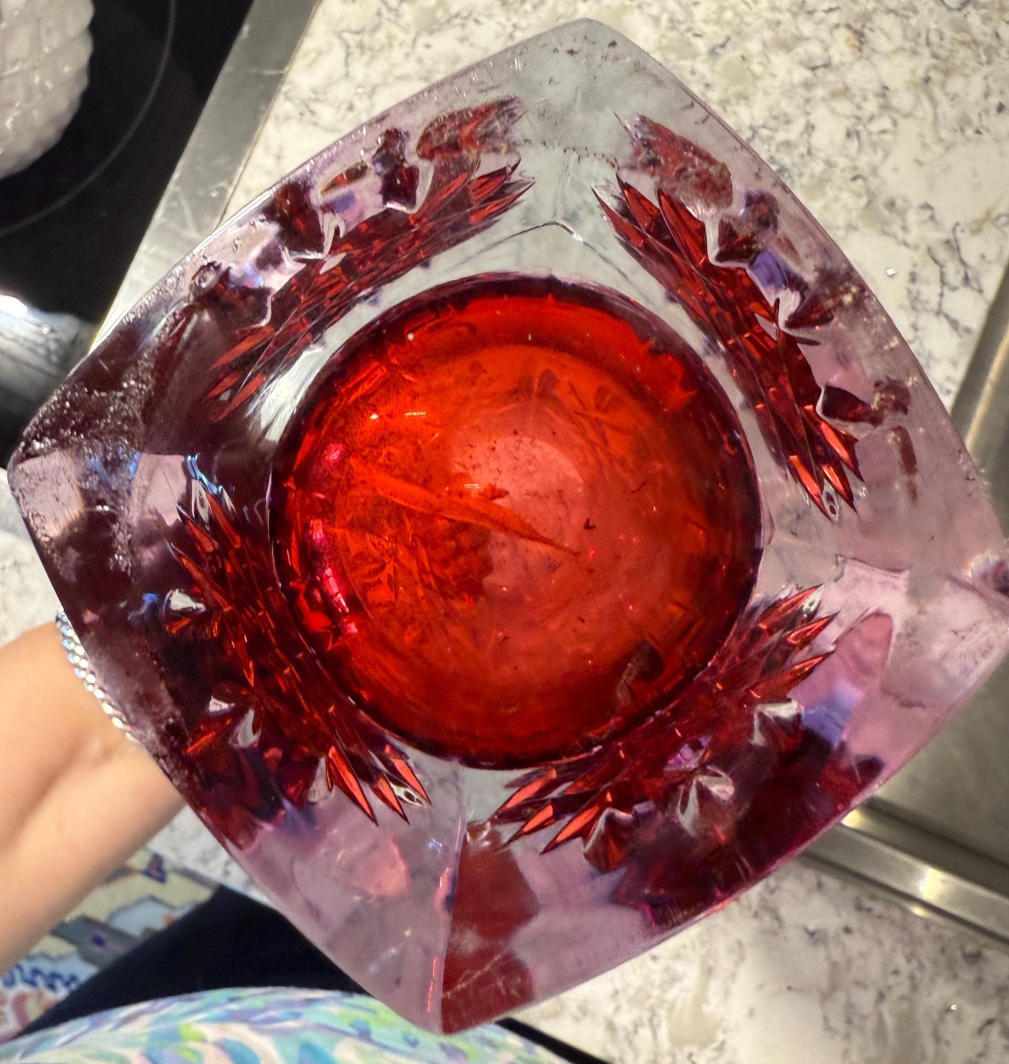 Excellent vintage condition. No chips, cracks, or noticeable scratches. The clarity and color of the lead crystal are vibrant and beautiful, consistent with its age and quality.