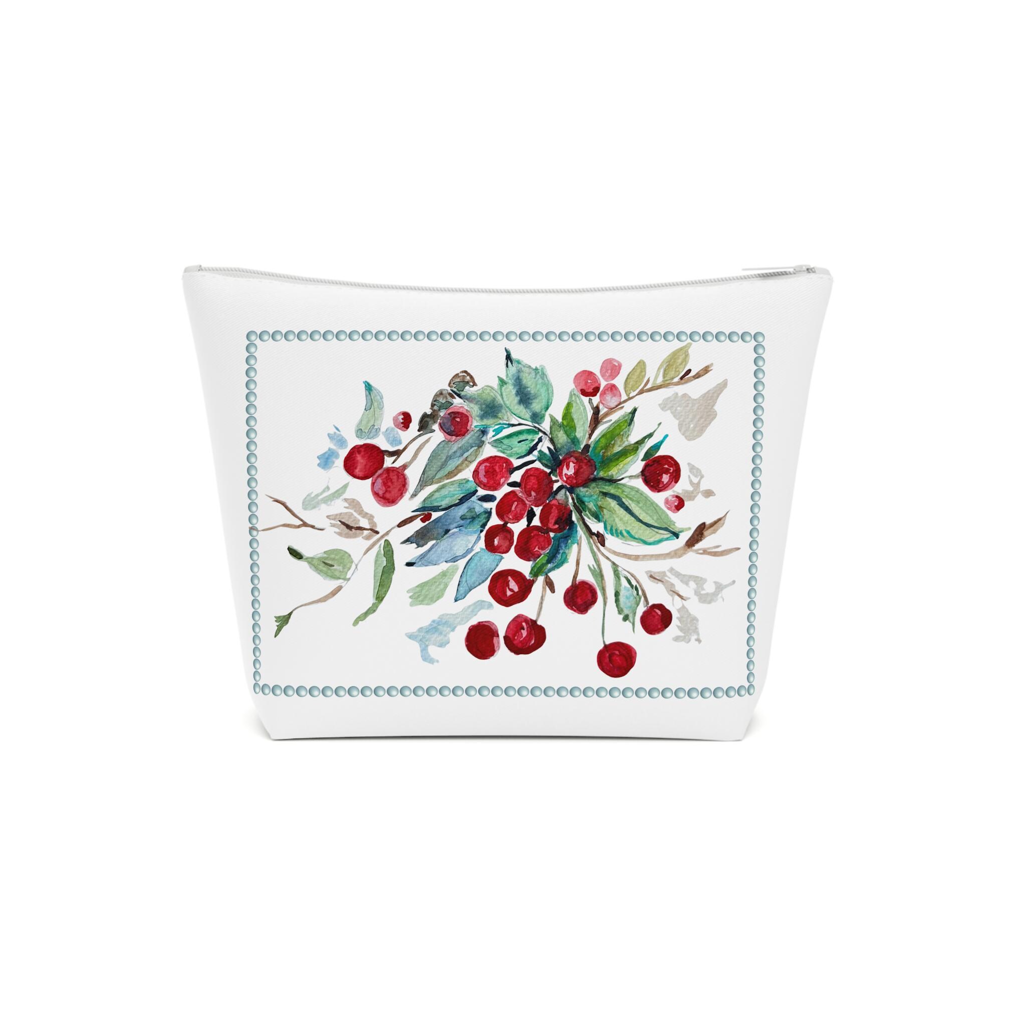 Introducing a beautifully designed Floral Cherry Cosmetic Bag from Shannon Doyle Art that perfectly blends style and functionality. Crafted from 100% durable cotton drill, this versatile bag offers a robust yet stylish solution for organizing your beauty essentials, toiletries, or even travel accessories.