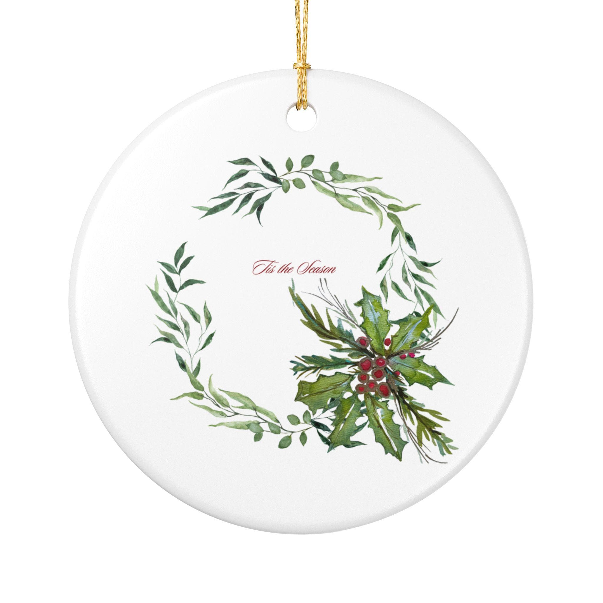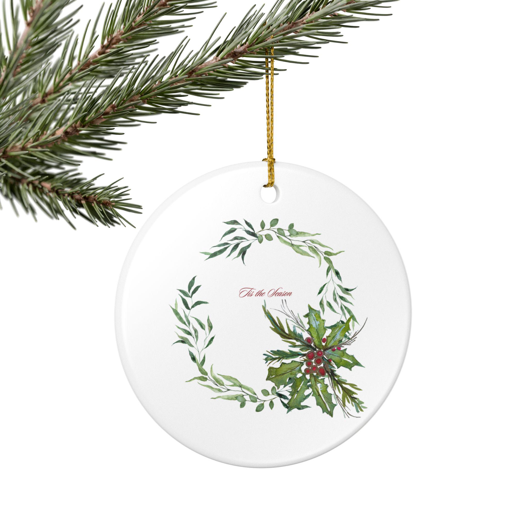 Tis the Season Classic Christmas Ceramic Ornament | Holiday Decor | Shannon Doyle Watercolor Art | Winter Decor | Gift for Her | Home Decor