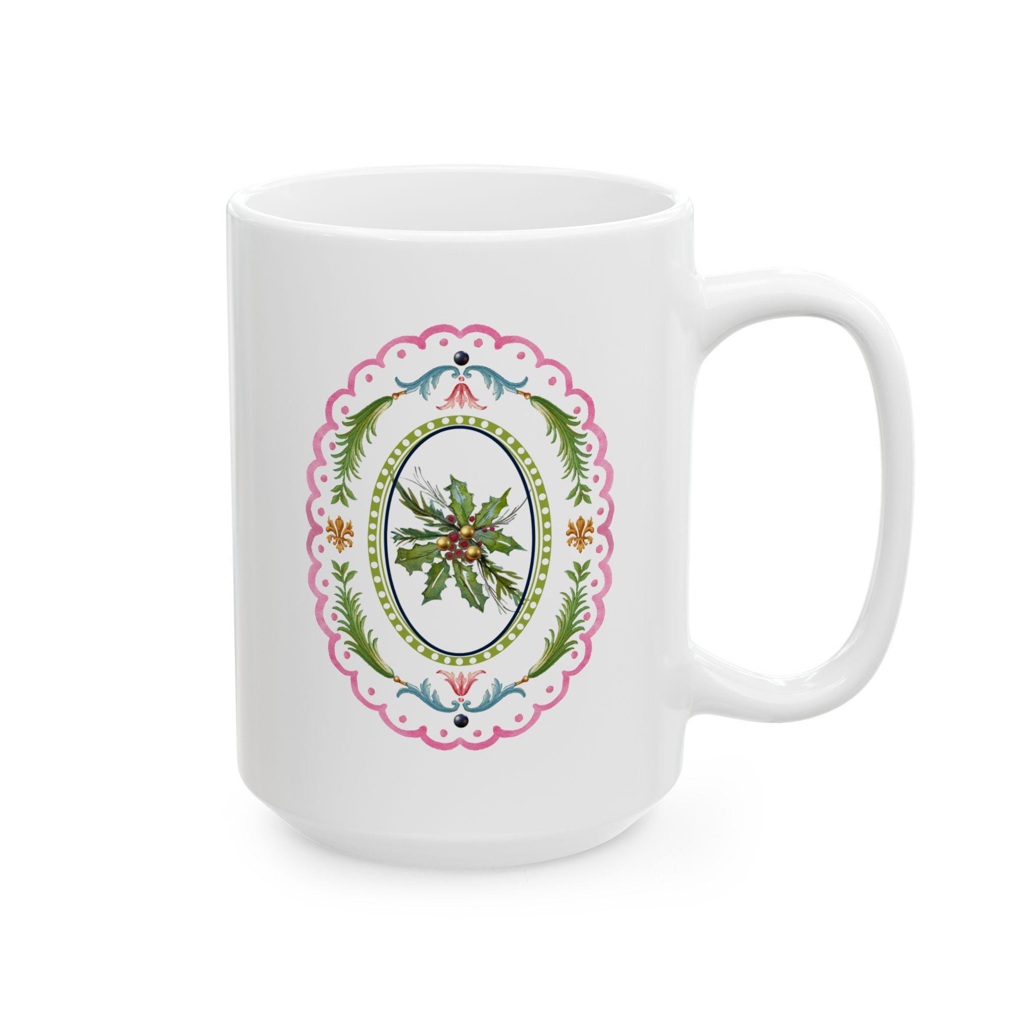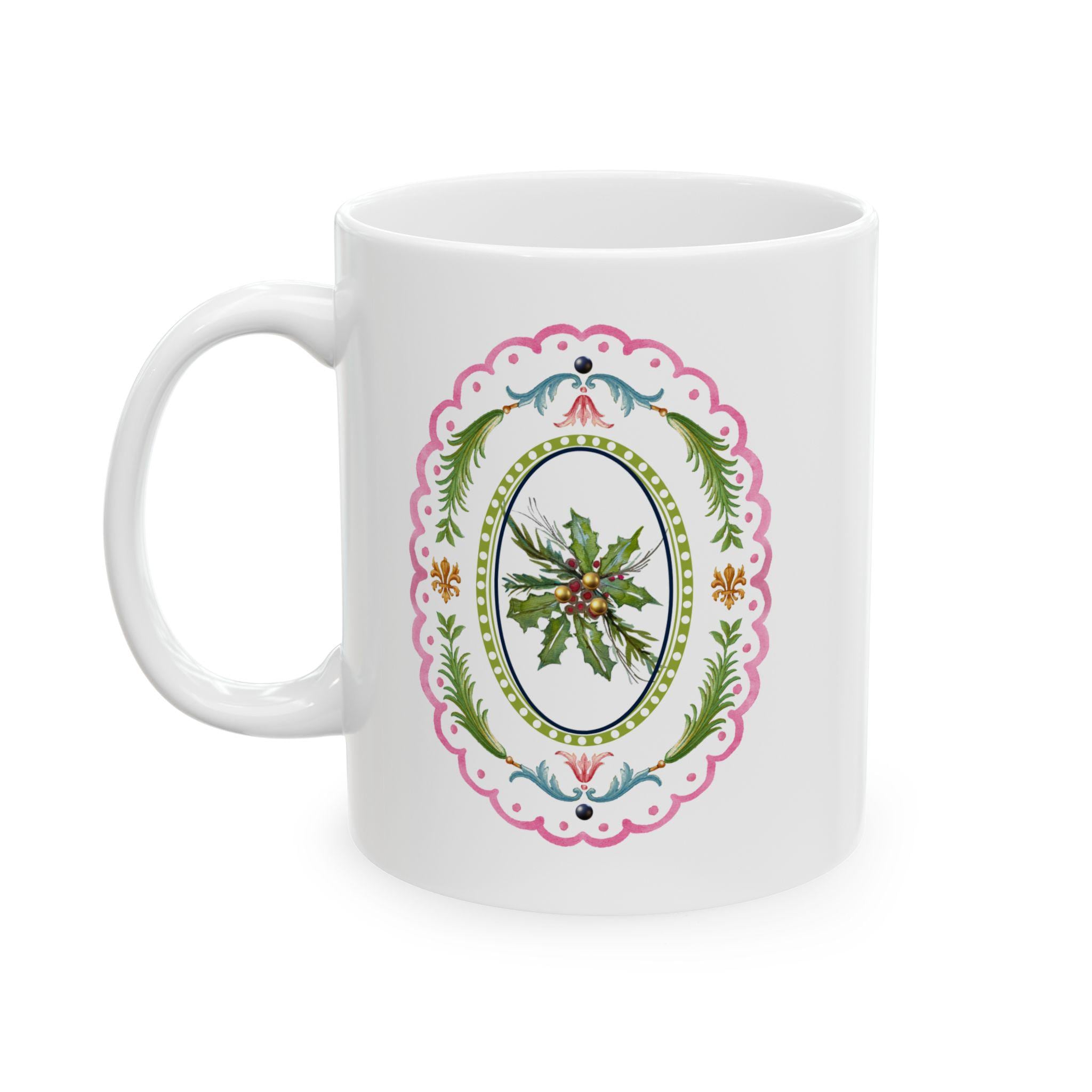 Christmas mug, holiday coffee mug, music wreath mug, watercolor mug, Shannon Doyle art, holly berry cup, ceramic Christmas mug, musician gift, festive tea mug, cozy winter mug, glossy art mug, botanical holiday mug, handmade holiday gift