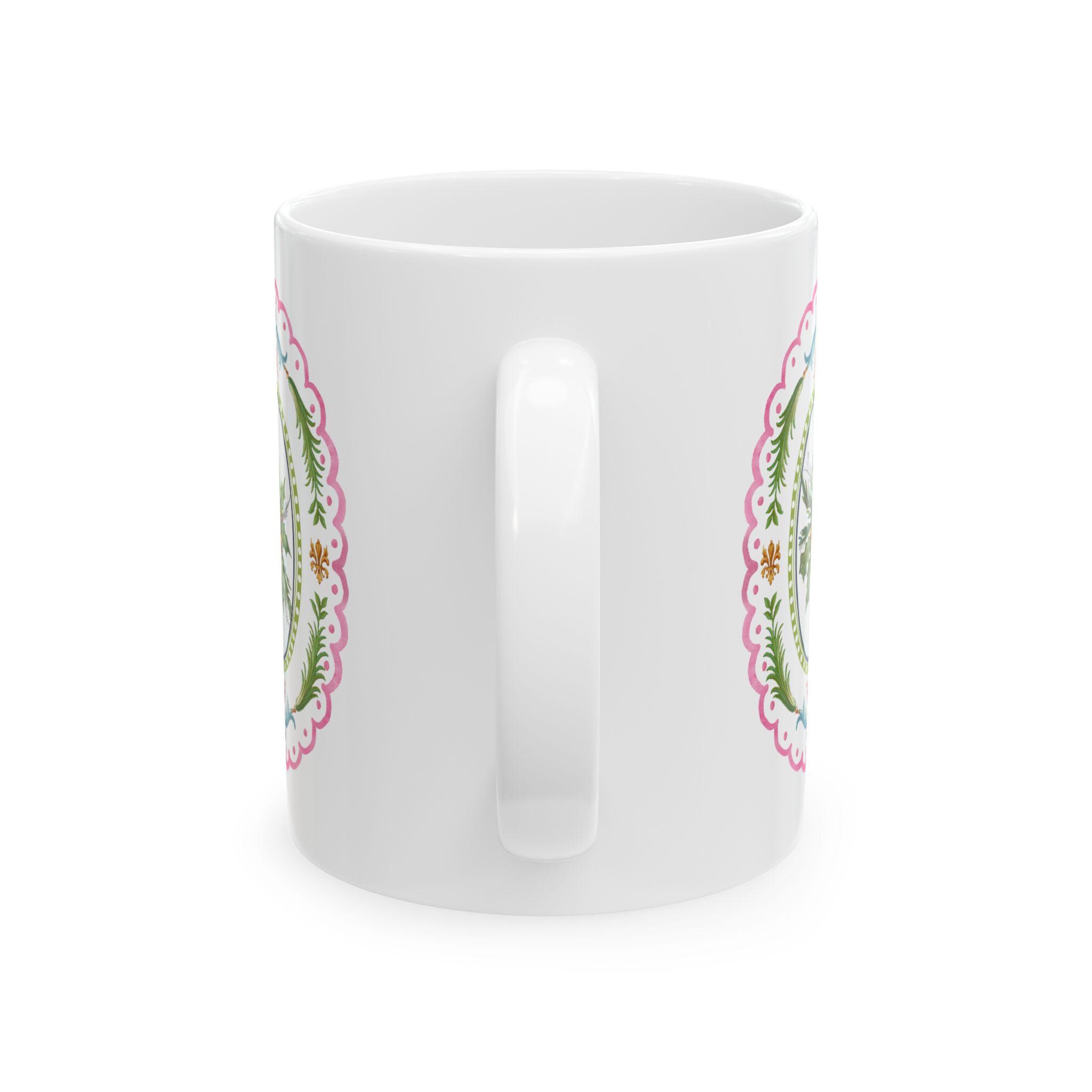 Celebrate the season with this unique ceramic mug adorned with a hand-painted watercolor wreath of holly leaves and berries, delicately entwined with musical notes. Created from original artwork by Shannon Doyle, this mug brings together the charm of nature and the joy of music for a heartwarming winter design.