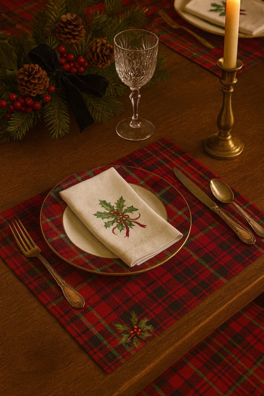 Elevate your dining experience with this charming placemat, perfect for bringing warmth and character to any table setting. The vintage-inspired design radiates a cozy, festive vibe, making it an ideal addition during holiday gatherings and celebrations. Whether you're hosting a Christmas dinner or simply enjoying a family meal, this placemat will enhance your dining environment. It's perfect for anyone who loves to entertain or decorate their home with seasonal touches. Make each meal special with this thoughtfully crafted piece that blends functionality with aesthetic appeal.