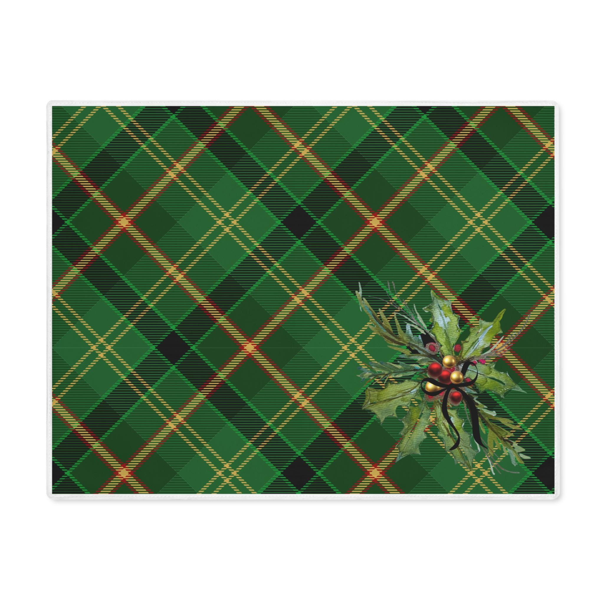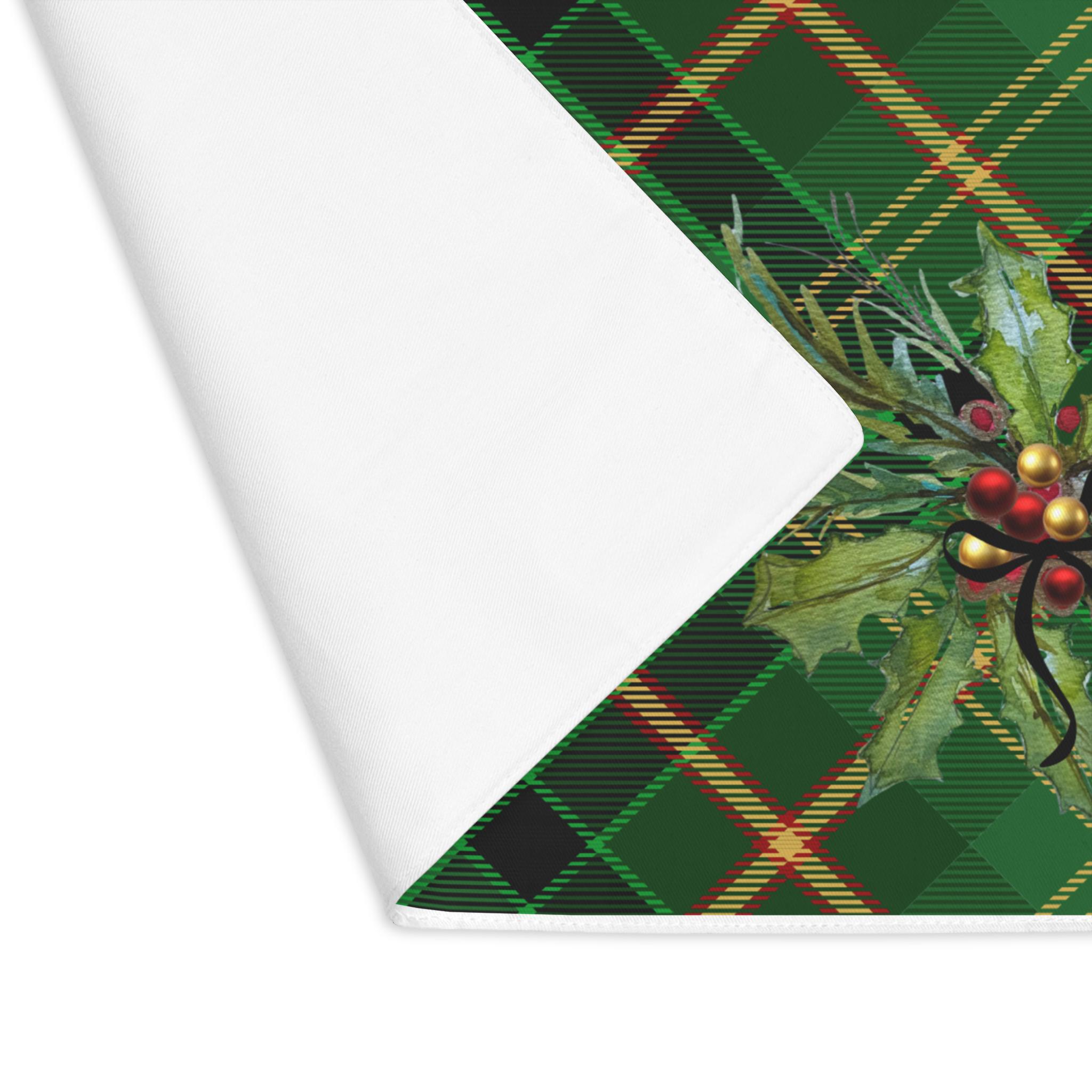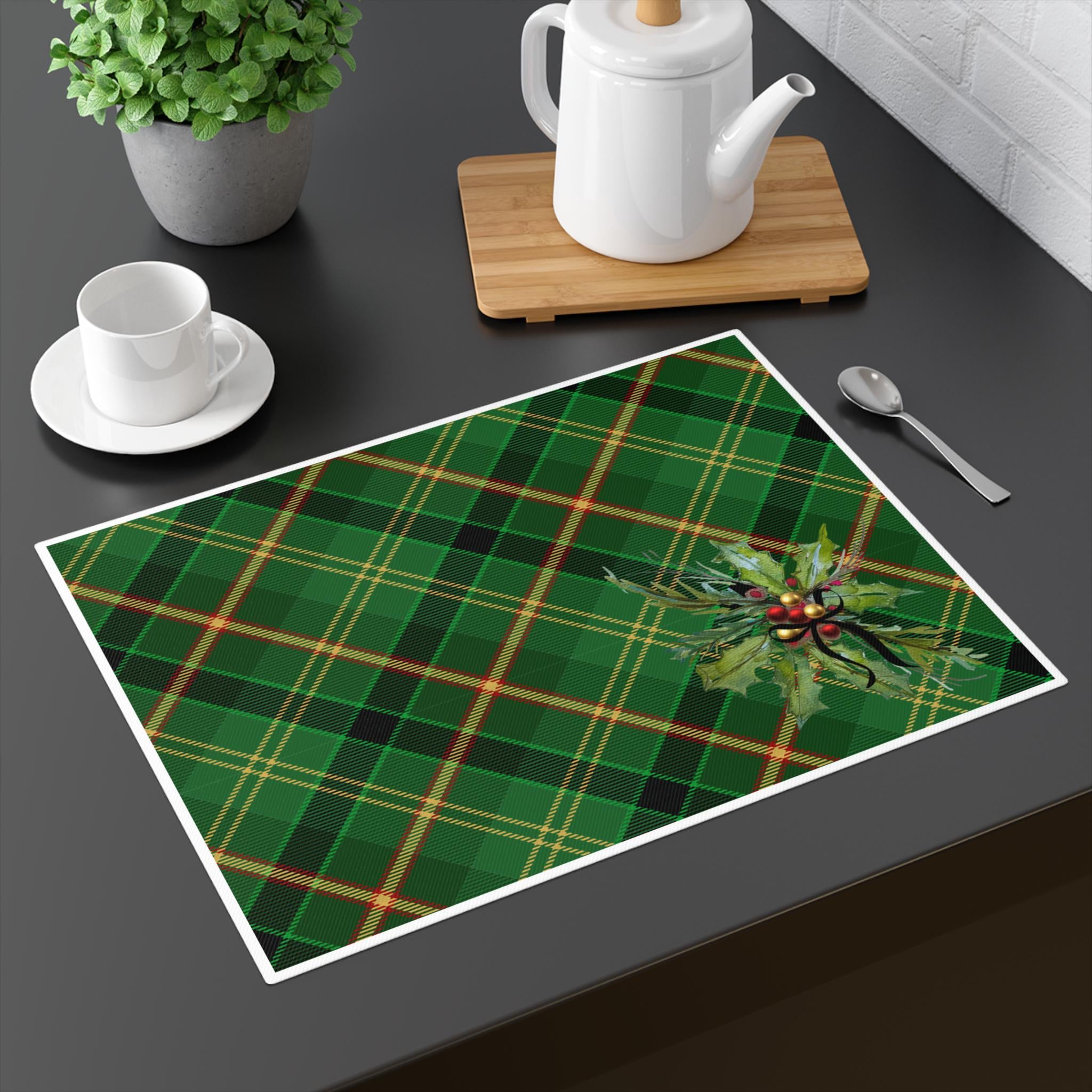 Christmas Tartan Placemat with Watercolor by Shannon Doyle, Holiday Table Decor,Red Green Plaid, Traditional Christmas