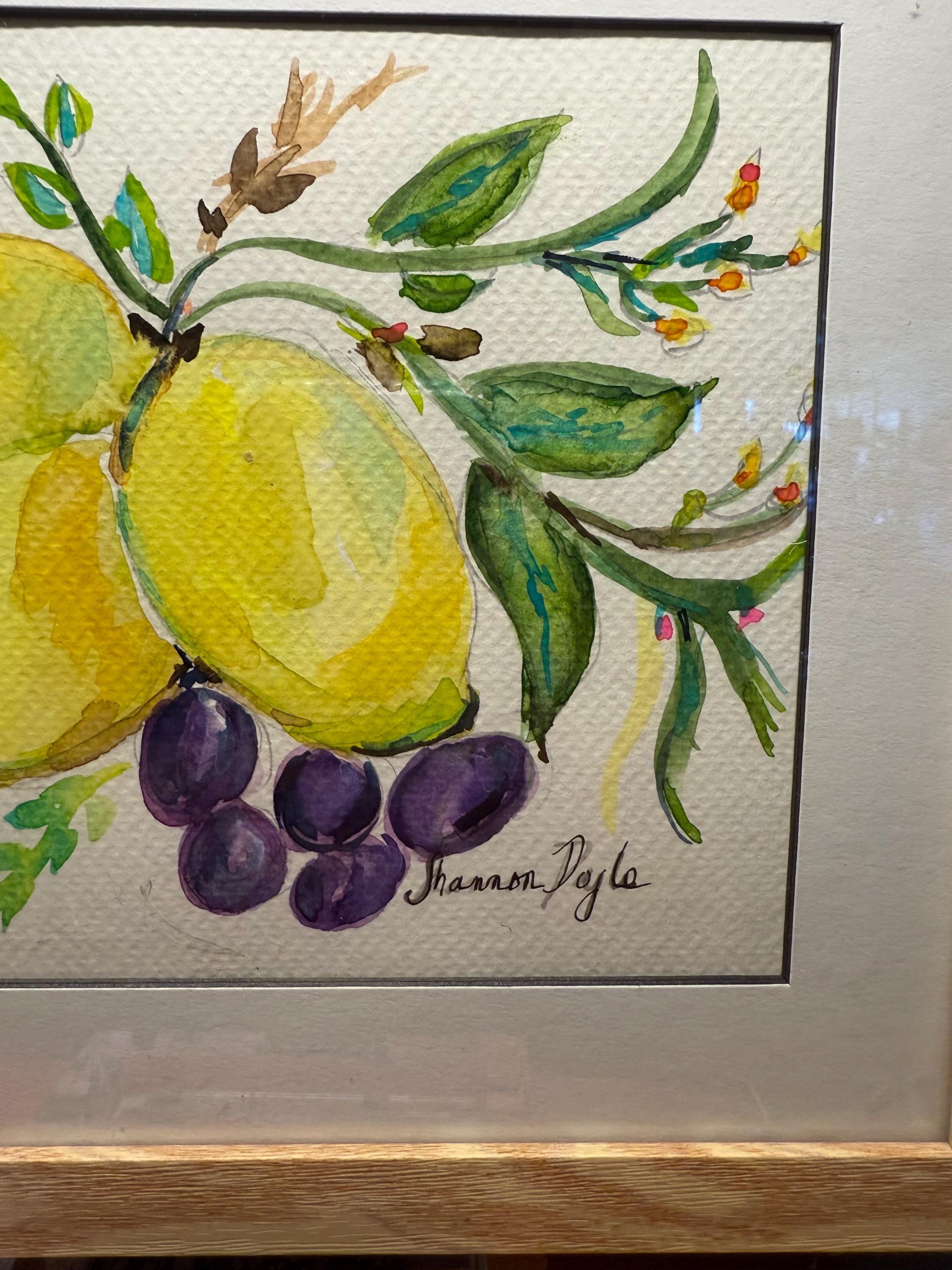 Bring the vibrant energy of fall into your home with this original watercolor art by Shannon Doyle. Featuring lemons and wild foliage in vivid greens, this botanical composition celebrates the beauty of harvest season in a fresh, modern style.