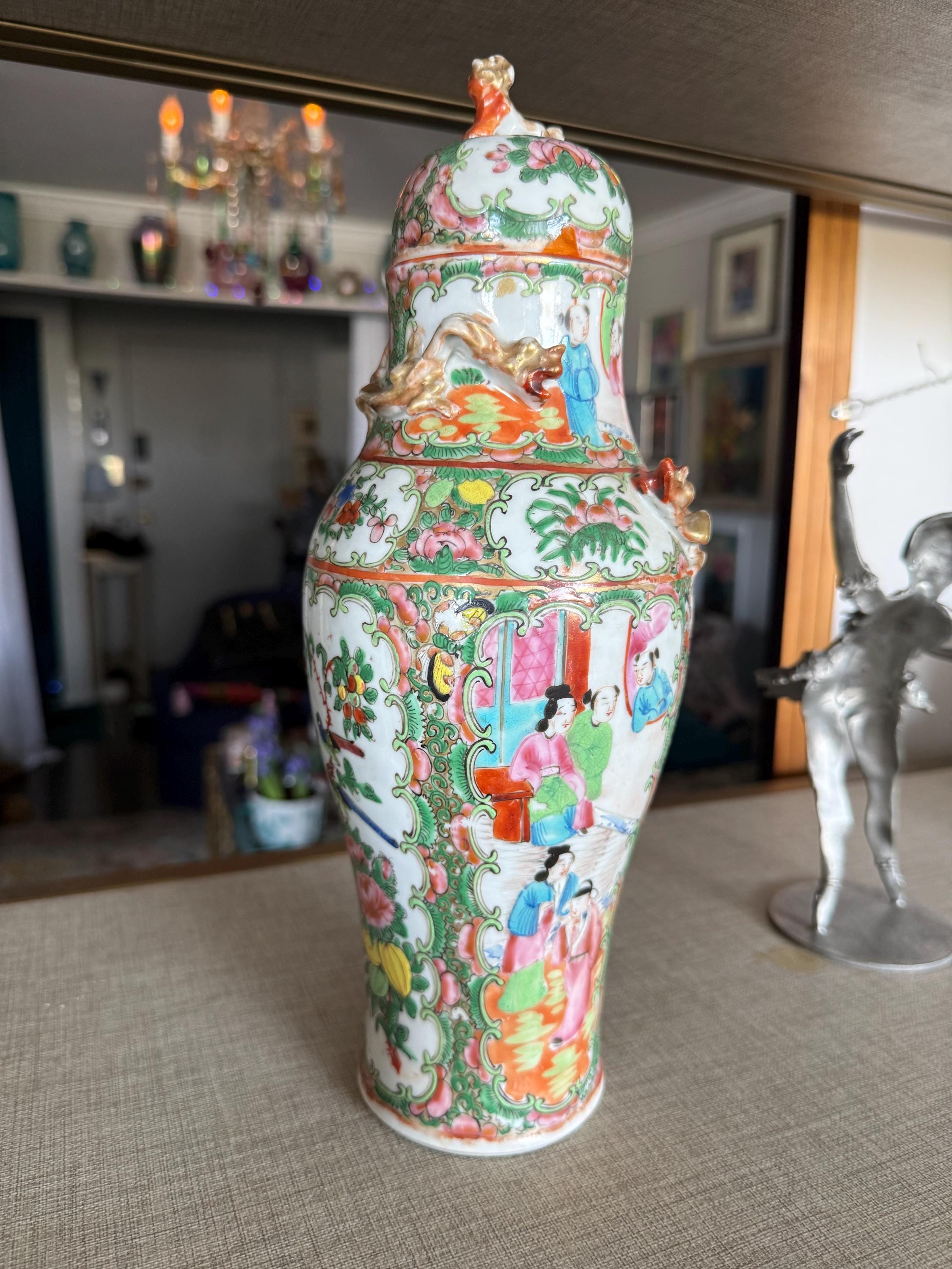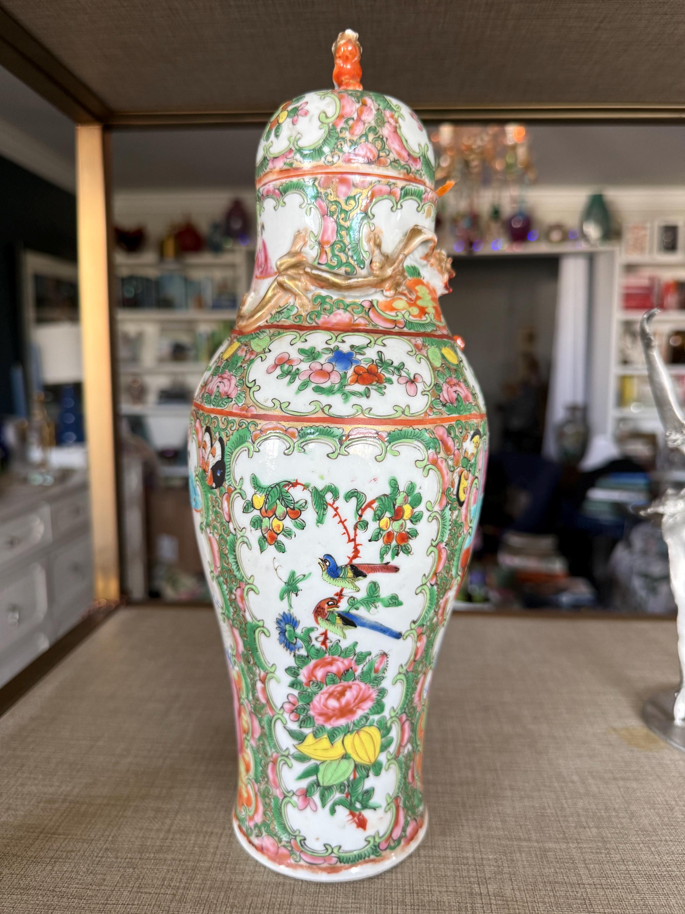This lidded vase is both decorative and functional, making it a perfect statement piece for chinoiserie interiors, traditional décor, or eclectic modern spaces seeking a touch of global charm.